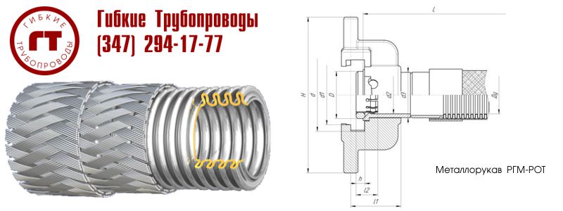Завод металлорукавов АО "Гибкие Трубопроводы" производит и продает по доступной цене металлорукав с гайкой РОТ собственного производства, серии РГМ-РОТ. Производство осуществляется на заводских мощностях компании в строгом соответствии со стандартами ISO 9001-2015.