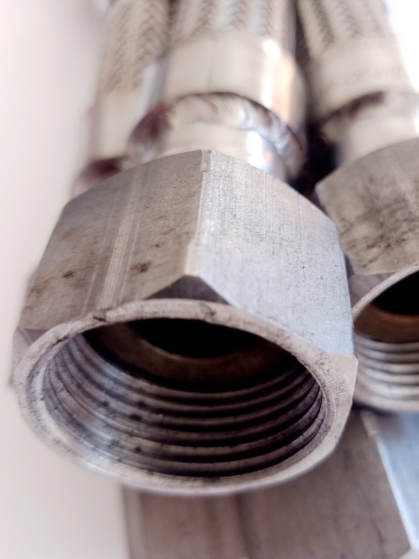 Все изделия имеют нержавеющий гофрированный сильфон в стальной оплетке из стали AISI 304 (09Х18Н9). Гайка может быть изготовлен из нержавеющий или оцинкованной стали.
